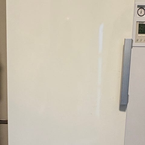 Hvid skabsfryser i super stand, nærmest ingen brugstegn, fryseren har hylder under hver skuffe, så man selv kan vælge mellem skuffe eller hylde, alle skuffer er intakte, fryseren har behageligt lys i toppen, hvilket giver godt overblik når du åbner døren.