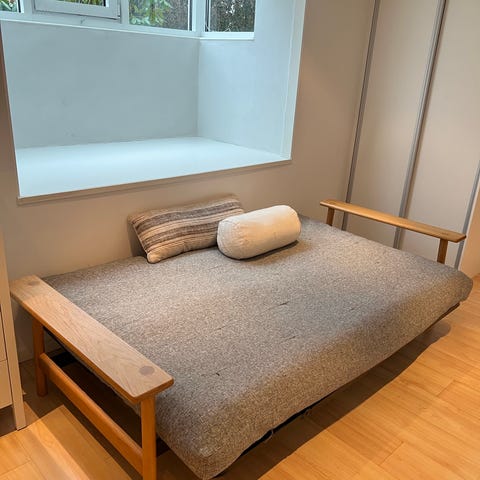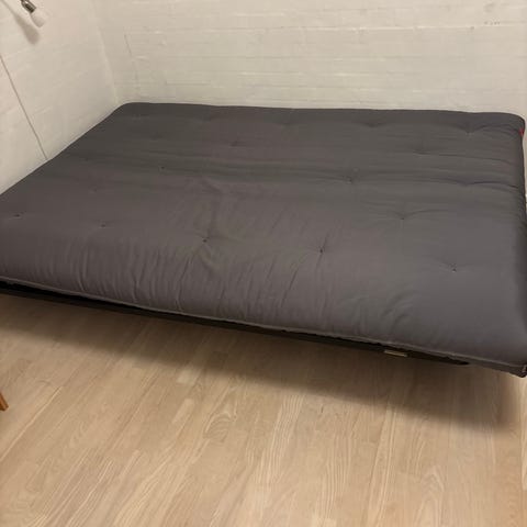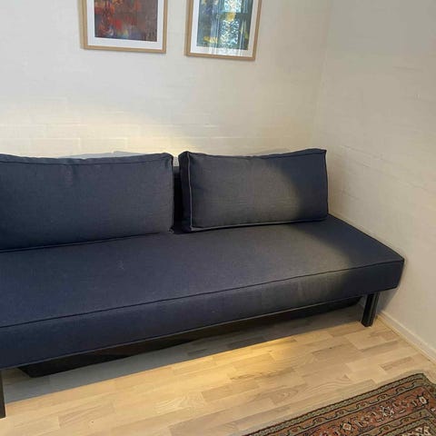 Super flot sovesofa / gæsteseng fra Innovation Living. Kan stå som seng eller sofa. Der er to indstillinger i ryglænet. Stort opbevaringsrum under sengen. Sengen har stået i røgfrit hjem. Sengemål udslået: 120x200x42 cm. Nypris 5.500 kr.