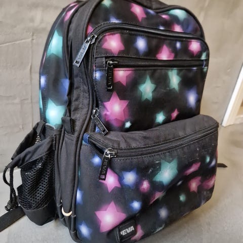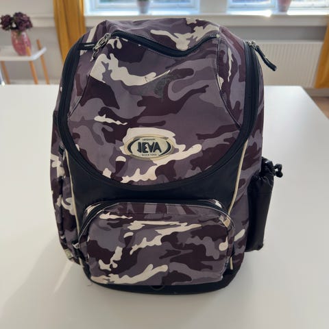Jeva skoletaske i stof med ekstra idrætstaske har flere rum til opbevaring. Den har justerbare skulderstropper og termo lomme til madpakke
