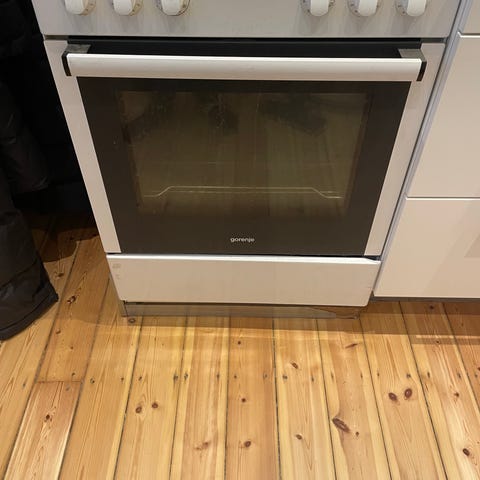 Komfuret virker, men hængslet på ovnlågen er defekt, og vi kan ikke skaffe et nyt hængsel. Derfor er vi blevet nødt til at købe et nyt komfur. Hvis man er fiks på fingrene og kan skaffe et hængsel, kan komfuret let repareres.
