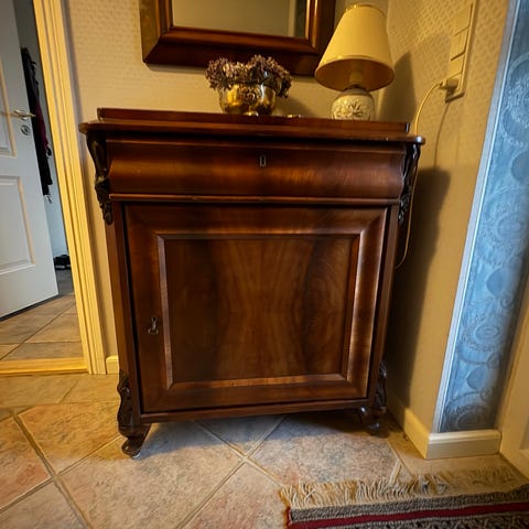 Kommode med facetslebet spejl og intarsia