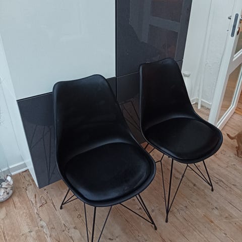 Sorte læderstole med træarmlæn fra Gramrode Møbelfabrik: 5000 kr for begge