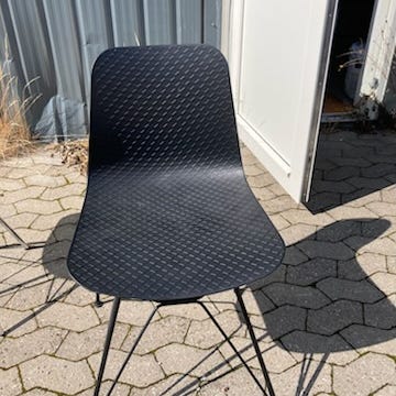 Sælger et sæt flotte Phoenix skalstole – Made in Denmark. Klassisk dansk design i formpresset træ med metalstel. Stolene er lette, stabile og kan stables, så de fylder minimalt, når de ikke bruges.