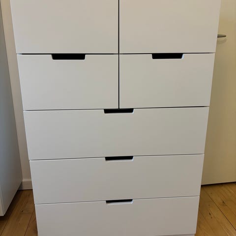Kommode med seks skuffer inkl. top og sokkel. Kommoden er i farven antracit, som ikke længere kan købes hos IKEA. Den fremstår i rigtig god stand. Skufferne er gode og dybe. Ift. transport er den nem at skille ad og opdele i to, og yderligere kan skufferne også tages af. Ny pris: 1.950.