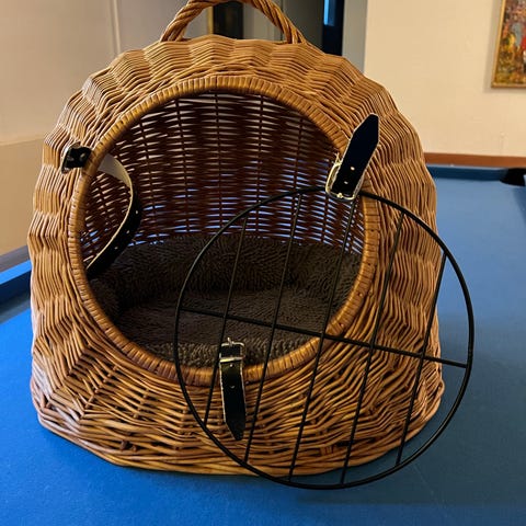 kattehule i rattan med soveplads ovenpå