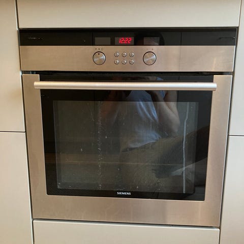Siemens indbygget ovn med varmluftsfunktion. Ovnen har en digital tids- og temperaturvisning samt drejeknapper til indstilling af funktioner. Døren kan åbnes, og der medfølger bageplade og riste. Egnet til bagning og madlavning med varmluft for jævn varmefordeling.