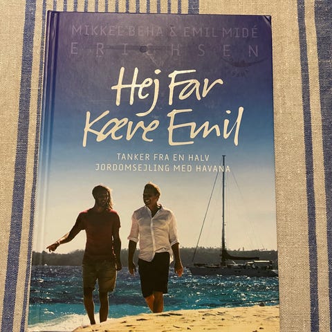 Erichsen Hej Far Kære Emil bog med tanker fra en halv jordomsejling med havkatten. Indeholder personlig hilsen og signatur.