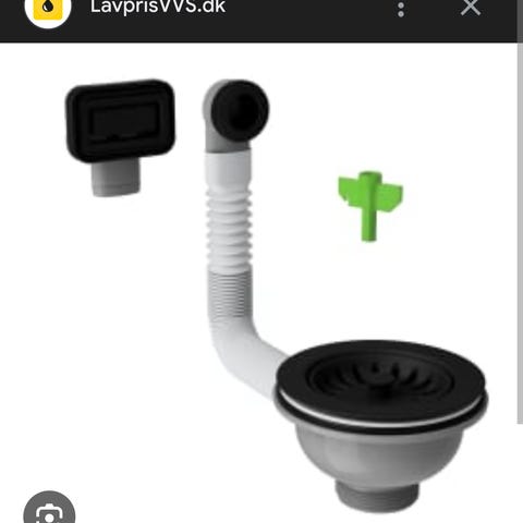 Franke bundventil og et sæt afløbsrør, alt er nyt, og er stadig i forsejlet pose.