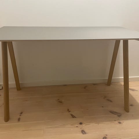 Velholdt HAY skrivebord med sort linoleum bordplade og ben i sortbejdset eg. Nypris er ca. 5.000 kr.