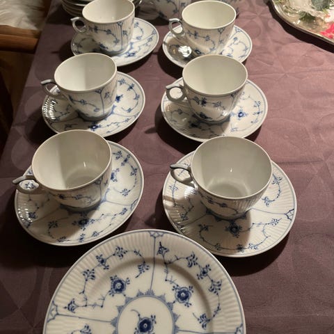Royal Copenhagen Musselmalet Riflet Spisestel i porcelæn