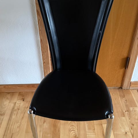 6 spisestole til salg i sort med læderhynde - alle 6 stks til 700 kr.