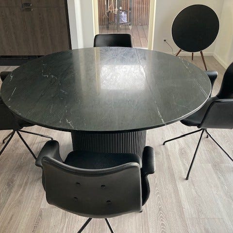Der er desværre kommet 4 små hakker i kanten af bordet ved flytning, men det billede som er lagt op af hakkerne er de største af dem.