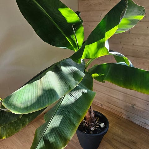Bananplante på ca 2,5 meter i højden. Står ganske fint.