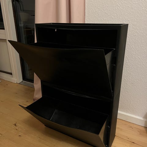 Pladsbesparende skoskab fra IKEA sælges. Giver en meget nem måde at opbevare flere par sko på lidt plads og uden at det sviner. Skabet er i fin stand og måler 49x28x93cm