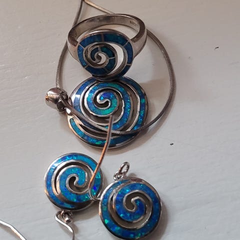 Havperlemor fra New Zealand er indsat, som giver et fint spil med sølvet.