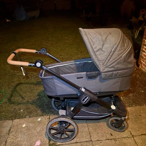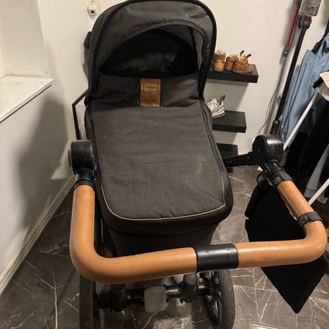 Vi sælger vores barnevogn og klapvogn fra emmaljunga i mørkegrå, med tilbehør. Den har været brugt flittigt til 2 børn, hvilket også har sat nogle brugsspor (se billeder). Pletterne er fugt. Begge er vasket i neutral sæbe og renset i pH rens. Den har været brugt inde og ude. Den fungerer upåklageligt.