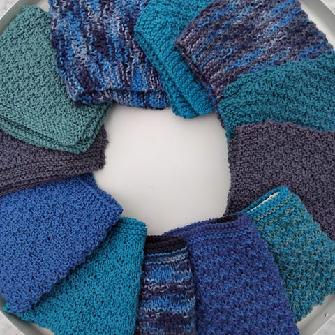 10 STK. KARKLUDE STRIKKET I 100% BOMULDSGARN MED ABRIKOSE FARVER. MÅL: CA. 24 X 25 CM. - VASK VED 60 GRADER - PRIS 80,- KR. FOR 10 STK. - VED FORSENDELSE MED DAO.