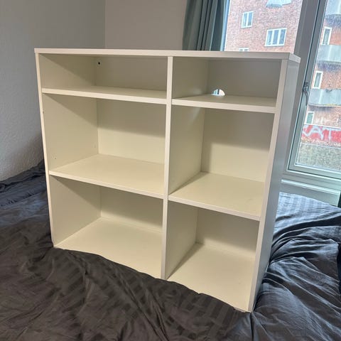 Praktisk hvid kommode med åbne rum, perfekt til opbevaring af toiletpapir, håndklæder, rengøringsmidler eller småting. Passer godt på badeværelset eller gæstetoilettet. Står stabilt og er i pæn stand med normale brugsspor. Nem at placere over toilet eller som lille opbevaringsreol.