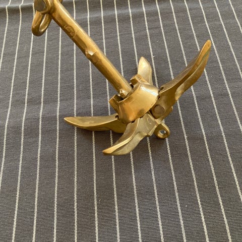 5 kg. anker. Ankeret er lavet af metal med en kæde, og greb til skib.