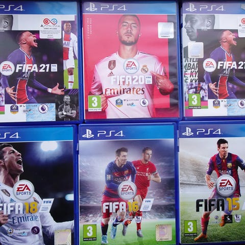 PlayStation 4 FIFA 21, FIFA 16 og FIFA 20 spil. Spilene er til PlayStation 4 konsol og tilhører FIFA-serien, som er fodboldspil. Hvert spil har aldersanbefaling 3+.