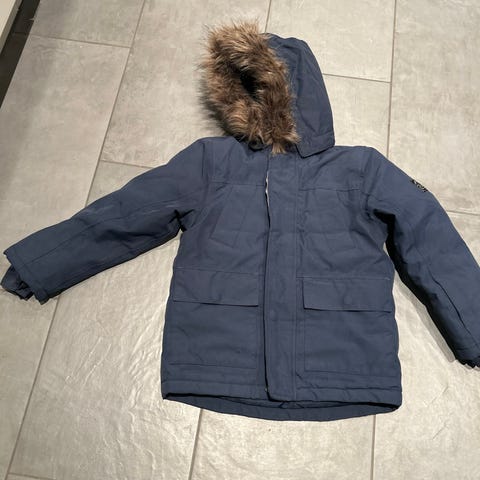 Name it dunjakke i blå farve til drenge i størrelse 128. Jakken er lavet af dun, hvilket giver varme og komfort. Ikke meget brugt.