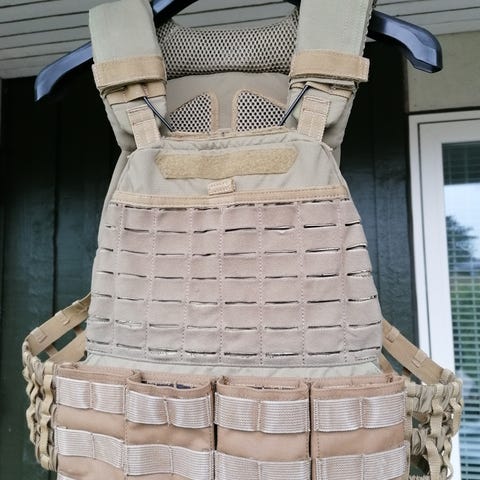 Vesten er fra mærket 8fields og er et solidt mærke i god kvalitet. Der er på monteret andre cummerbunds (kig på billede), 3 magasin lommer og 1 multi purpose lomme med lynlås. Der er ikke rigtige skudsikre plader i, men nogle skumgummi nogle der føles lidt hårde i det. Vestens molle system gør det muligt at på montere endnu mere udstyr hvis ønsket.