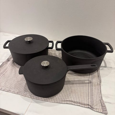 Næsten som ny - panden har dog slået sig en lille anelse i bunden, så jeg vil foreslå at bruge den til gas.