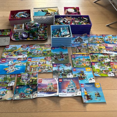 LEGO Friends LEGO klodser i forskellige farver og former. Sættet indeholder diverse byggeklodser og figurer, herunder en hest. Velegnet til kreativ leg og opbygning.