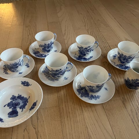 12 kopper 9193, 10 underkopper 9193, 14 kagetallerkener 8092, 4 underkopper 9194,