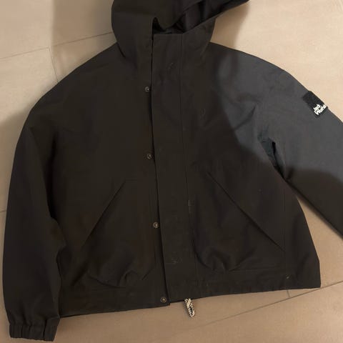 Lækker vind og regnjakke fra Jack wolfskin i str 128. Ikke meget brugt så ser stadig pæn ud.