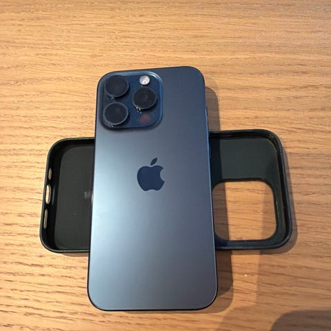 Apple iPhone 15 Pro smartphone med 128 GB lagerplads. Batterikapacitet 89%