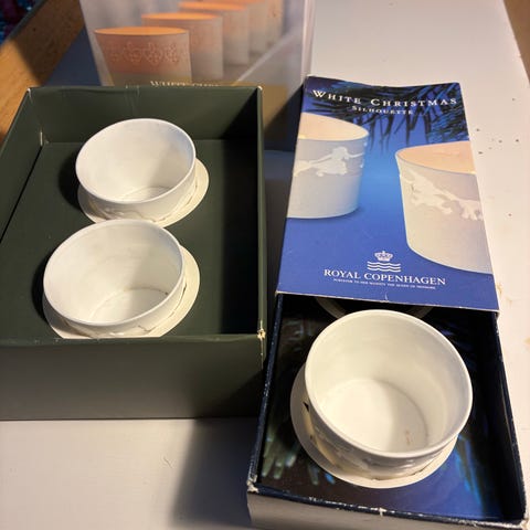 Stagerne er i mat hvid porcelæn med elegant, oplagt reliefbort i klassisk julemotiv. De giver et smukt, blødt skær og skaber øjeblikkelig julestemning i vindueskarmen, på bordet eller som del af en dekoration.