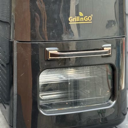 Brugt få gange. Kan både grille/stege kød på grillristen og lave sprøde fritter i skålen.