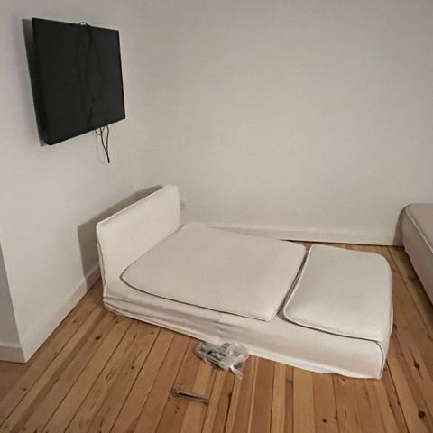 2 personers sofa med chaiselong og 4 puder fra IKEA model Söderhamn. Lynlåsen til montering af den ene siddepude er gået i stykker, men sofaen virker stadig fint. Betrækket kan vaskes og sofaen kan skilles ad. Skal bæres ned fra 1. Sal