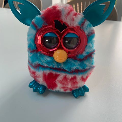 Furby interaktivt legetøj i pink farve med blødt materiale. Legetøjet har elektroniske funktioner og er designet til børn.