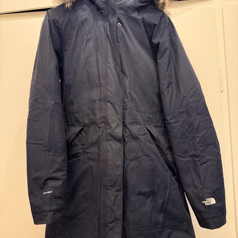 The North Face Vinterjakke til kvinder i størrelse M. Jakken er blå og lavet af dun, hvilket giver isolering og varme til kolde vejrforhold.