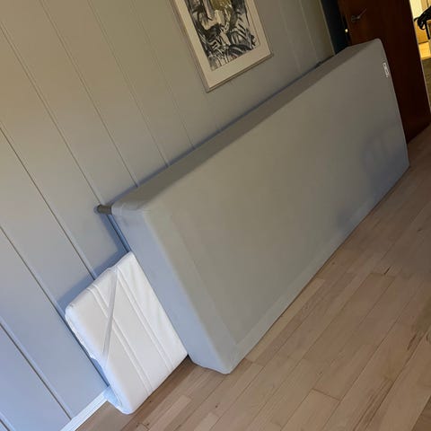 Jysk enkeltseng med gråt stofbetræk og ben i træ. Madrassen er kategoriseret som blød. Sengen har en enkel og funktionel konstruktion, velegnet til enkeltpersoner eller gæsteværelser.