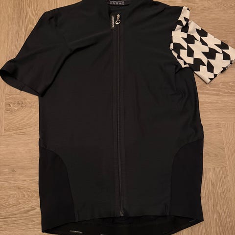 Assos Equipe RS Cykeltrøje i racefit størrelse L. Special edition. Brugt 1 gang og som ny. Trøjen er sort og lavet af åndbart materiale med aero ærmer. Den har 3 lommer bag. Vejl. pris var ca. kr. 1600,-