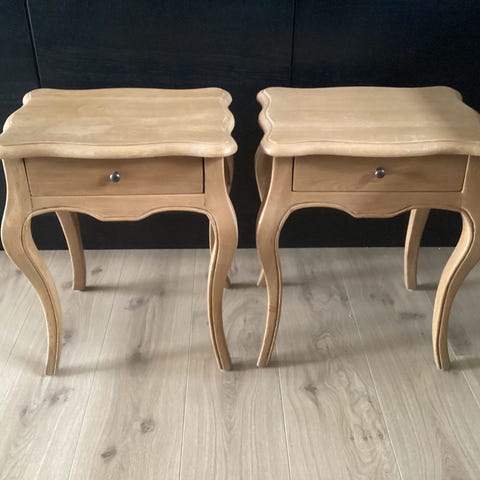 Sengeborde i massiv egetræ med sorte metalben