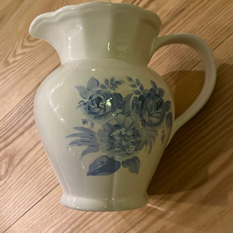 Royal Copenhagen flødekande i porcelæn med blå blomstermotiv. Kanden har et klassisk design og er velegnet til servering af fløde eller mælk. Produktet er lavet i hvidt porcelæn med håndmalede blå detaljer.