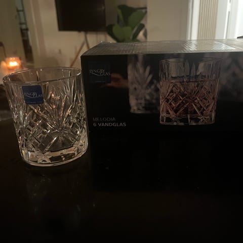 Består af 6 glas à 23cl og 1 karaffel à 1L.