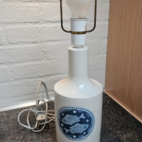 Fremstillet i 1200 eksemplarer af Fog og Mørup København for Royal Copenhagen. Vædderens stjernetegn 21. marts til 20. april. Det er snart! Pæn lampe uden skader eller afslag, men skærmen er gulnet og med pletter. Kan sendes på købers regning til pakkeshop GLS eller DAO (56 kr.).