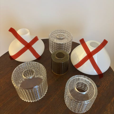 Ravfarvet lampeglas fra 70’erne. Kan muligvis bruges som udendørslampe eller som pendel