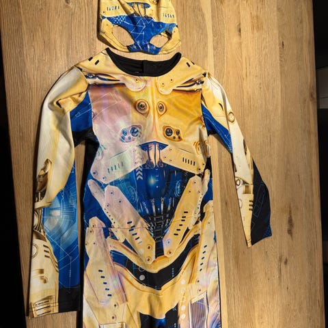 H&M dreng robot heldragt i størrelse 110. Perfekt til Fastelavn. Dragten er sort og lavet af polyester. Den har et design, der inkluderer detaljer som maskerede øjenåbninger og trykte mønstre.