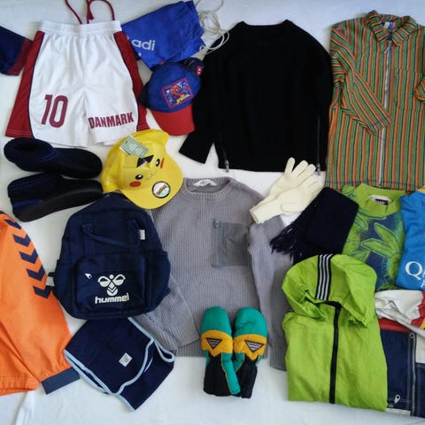 Tøjpakke A – Størrelse 110: 1 stk. dunjakke fra NameIt, 1 stk. hue, 2 stk. tynde elefanthuer, 1 stk. tyk elefanthue fra Ver de Terre, 1 stk. tyk halsedisse, 1 stk. vinterjakke fra NameIt, 1 par skibukser fra NameIt med seler, 2 sæt kortærmet sommernattøj, 2 sæt langærmet nattøj, 1 par tykke røde luffer, 1 par tynde strikluffer, 1 stk. blå skjorte, 1 stk. Pokémon-kasket, 6 stk. undertrøjer, 6 stk. langærmede t-shirts, 5 stk. sweatshirts, 5 stk. t-shirts, 8 par sokker, 10 par underbukser, 5 par lange bukser, 6 par shorts. Brugt men ok stand. Vasket uden parfume. Fra hjem uden dyr og røg. Sælges kun samlet.