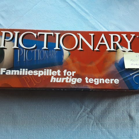 Pictionary Air brætspil med specialpen og kort. Spillet kombinerer traditionel tegning med digital teknologi. Indeholder pen, kort og instruktioner.