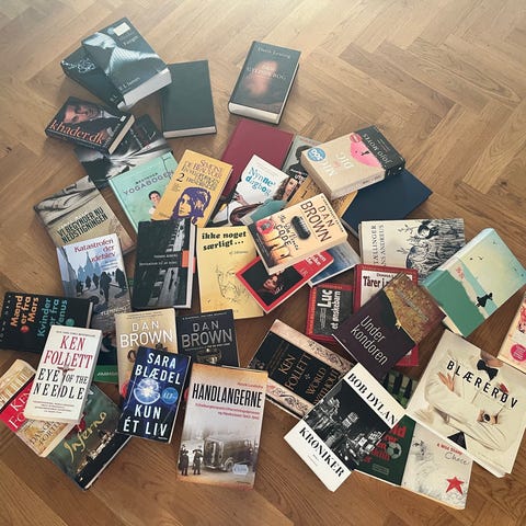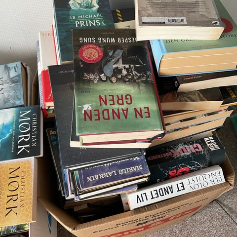 En stor pose bøger sælges for 100,-
