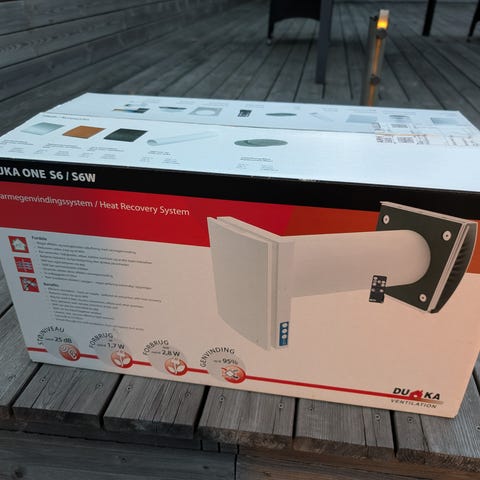 Duka one i hvid farve med fjernbetjening. Designet til vægmontering med enkel betjening via medfølgende fjernbetjening. Velegnet til ventilation i forskellige rum.