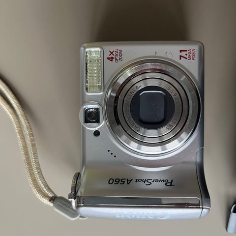 Canon PowerShot A410 digitalkamera med farveskærm og indbygget blitz. Kameraet har en kompakt størrelse og er designet til brug i forskellige fotograferingssituationer. Inkluderer tilbehør som batteri, oplader og bæreetui. Fungerer perfekt. 2820 Gentofte