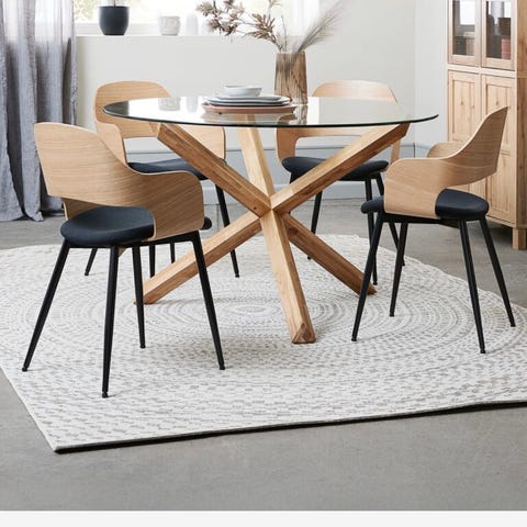 - Materiale: Hærdet glas og pulverlakerede stålben.